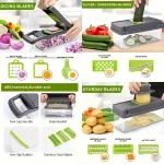 16 in 1 Vegetable Chopper – Multifunctional Manual Food Slicer Dicer, Kitchen Cutter with Container, Mandoline for Onion, Carrot, Garlic – Uncharged Plastic Kitchen Gadget Set with Drain Basket
