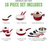 - Cookware Set Includes: 4″ Mini Frying Pan 7″ 9.5″ Frying Pan, 1 Quart and 2 Quart Saucepan with Lid, 5 Quart Stock Pot with Lid, 2.5 Quart Saute Pan with Lid, 7″ Stainless Steel Steamer, 4 Kitchen Utensils