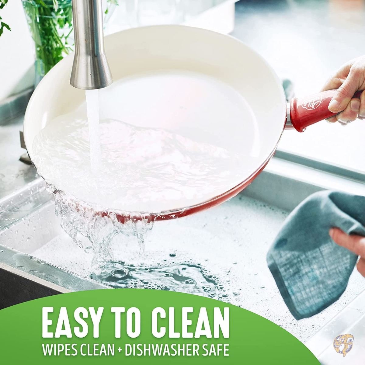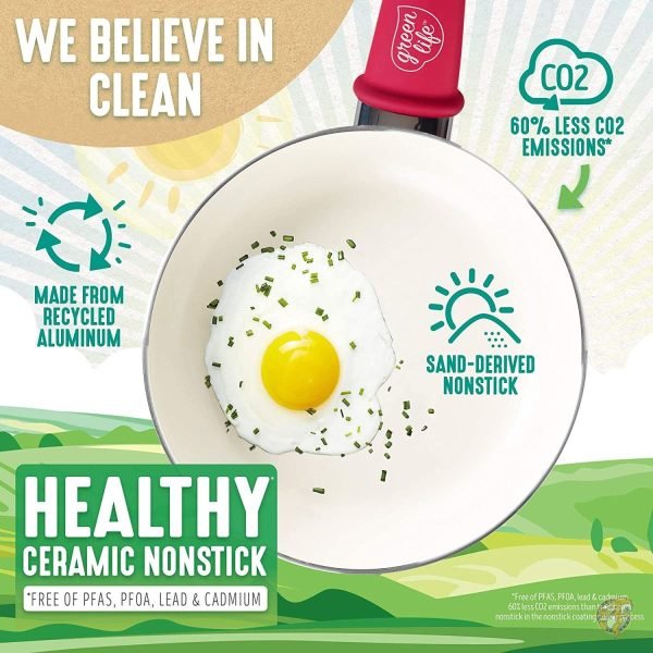 - Our healthy and easy to clean ceramic nonstick coating is made from sand and is free of PFAS, PFOA, lead and cadmium for easy cooking and quick cleaning