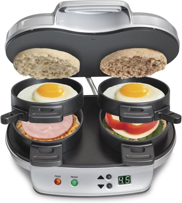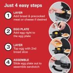 - Makes 2 breakfast sandwiches in under 5 minutes