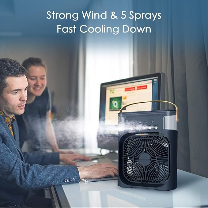 - 【More Quiet 7 Colors Lights】This mini air conditioner is professionally designed with a unique air duct design and fluid mechanics, 55db will not disturb your sleep. The 7-color LED lights create a comfortable and relaxing sleep environment.The USB charging port can be powered by various sources such as power banks, laptops, adapters, car chargers, etc