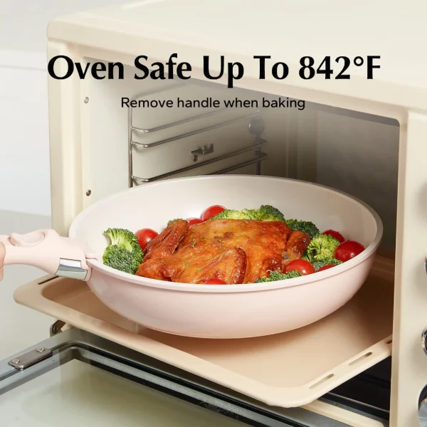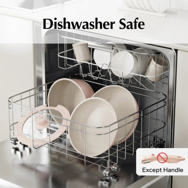 ✅Dishwasher Safe: After removing the handle, the cookware can be placed directly in the dishwasher. The ceramic coating on the bottom of the pan ensures it won’t be corroded by detergents.
