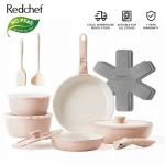 Redchef Nonstick Ceramic Rock Cookware Handle Removable 16Pcs Set No PFAS& PTFE& PFOA NonStick Frying Pan With Glass Silicone Lid