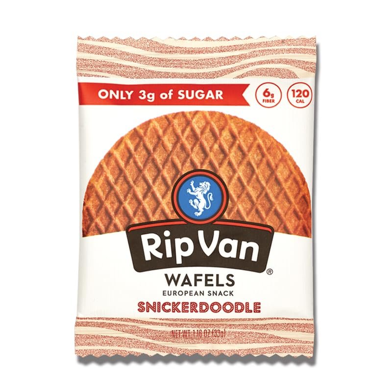 Rip Van Wafels Snickerdoodle Stroopwafels, Healthy Snacks, Non-GMO, Keto Friendly, Office Snacks, Low Sugar (3g), Low Calorie, 12 Pack